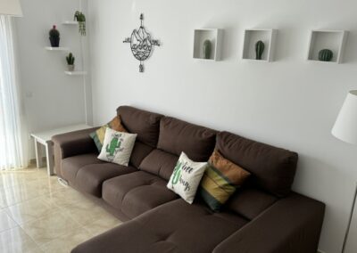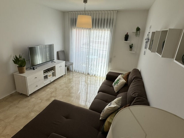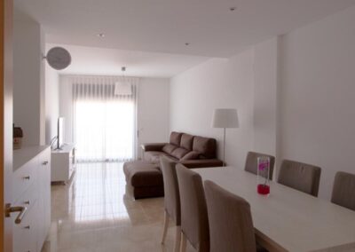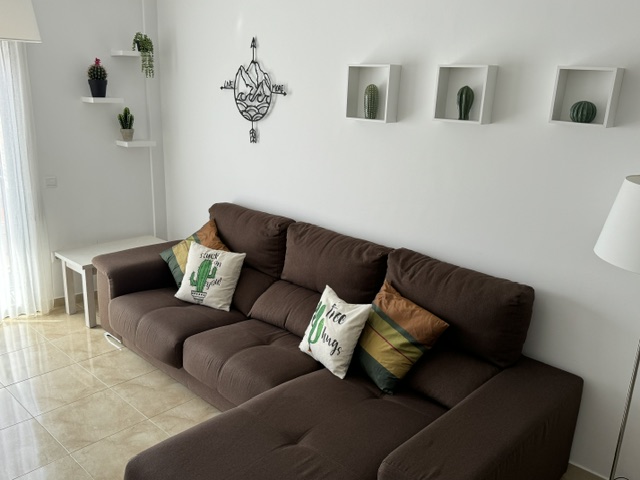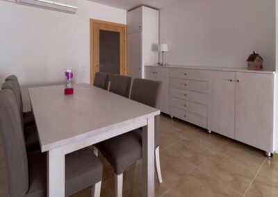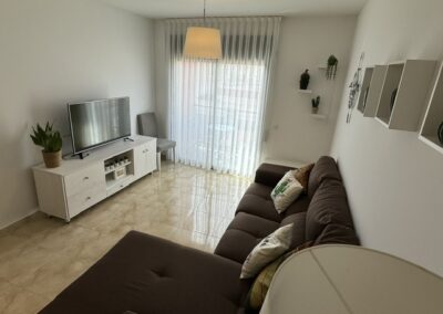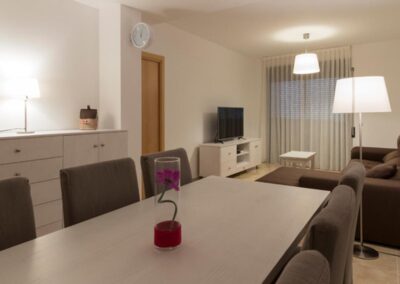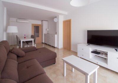 Repòs Mar i Muntanya te brinda un espacio de 70 metros cuadrados para disfrutar de una estadía única. Al entrar, te encuentras con una cocina totalmente equipada a la izquierda y, a la derecha, el primer baño completo. Justo enfrente, se despliega la sala principal, con una mesa versátil y un cómodo sofá con chaise longue para cuatro personas, frente a un televisor. Desde aquí, accedes al balcón, donde podrás disfrutar de las vistas de la montaña Roca Blanca en el horizonte.