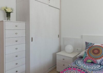 La otra habitación cuenta con literas, con camas individuales de 90 cm de ancho por 2 m de largo. Si necesitas una barandilla, no dudes en informarnos.