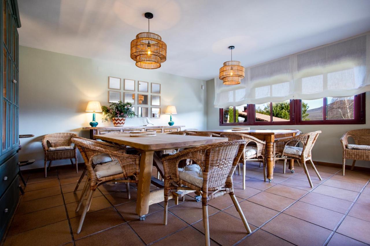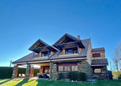 La casa cuenta con 5 habitaciones grandes, con baño incluido para 16 personas con posibilidad de aumentar su capacidad hasta 22 personas.1 aseo en la entrada y 1 en la cocina.Amplio salón-comedor con biblioteca y chimenea.Buhardilla con zona de juegos, salón TV y dos altillos.Jardín vallado con vistas espectaculares y zona de juegos.Cocina completamente equipada con office.Porche con comedor de verano y zona de sobremesa y tertulia.Aparcamiento dentro de la finca.Espacio de Barbacoa y Horno Castellano de Leña.