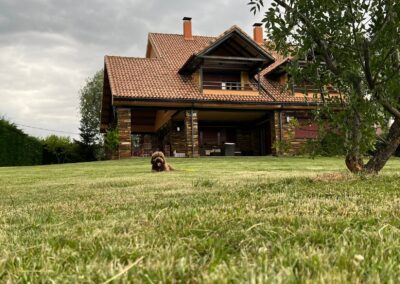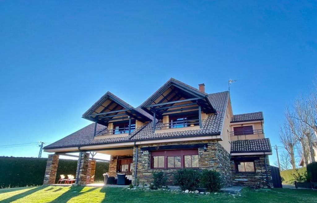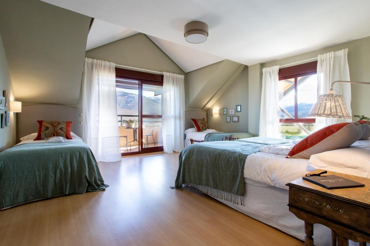 La casa, construida al estilo tradicional, está envuelta en un cuidado jardín y con unas vistas únicas a la Sierra de Ayllón que la alberga.