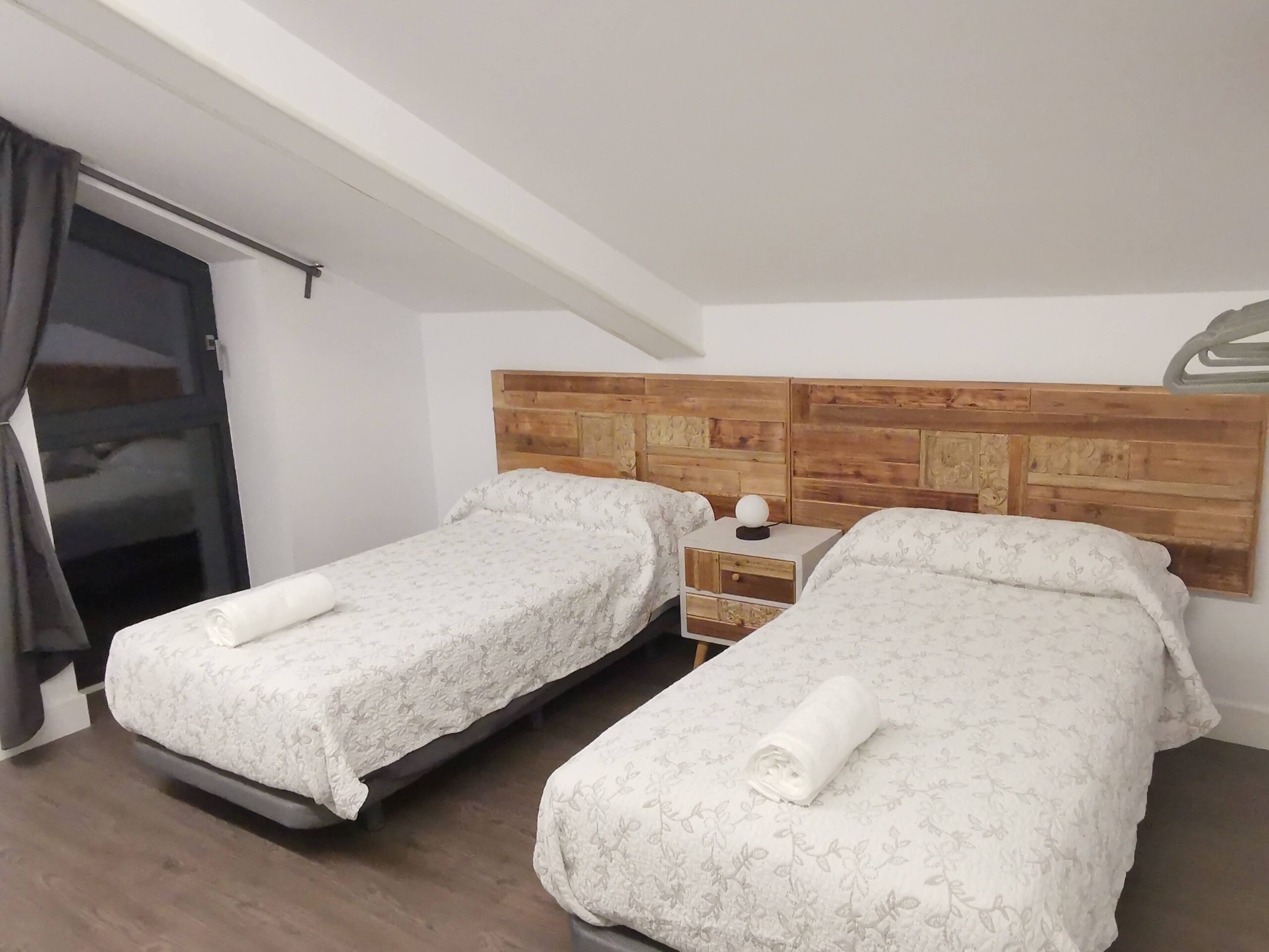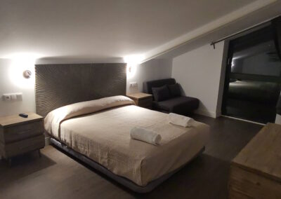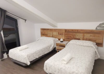 Bajo cubierta: habitación con 2 camas individuales, habitación con cama de matrimonio, habitación con cama de matrimonio y cama supletoria 120 y baño con plato de ducha.