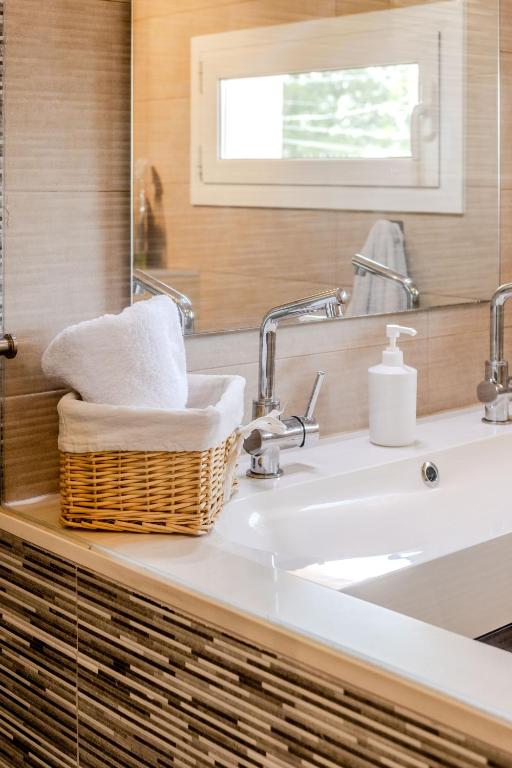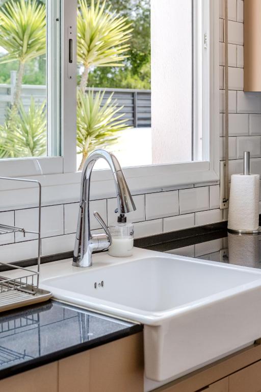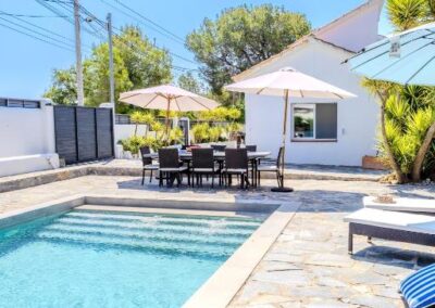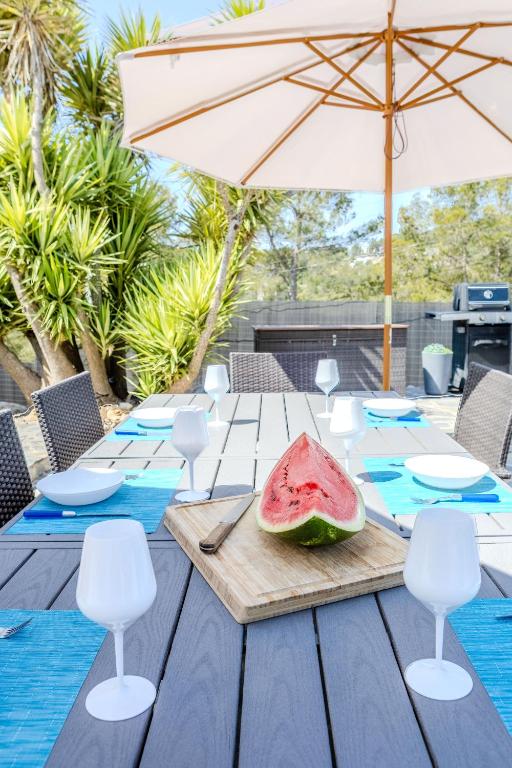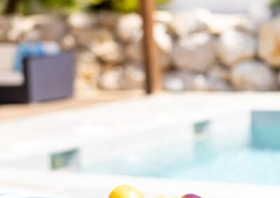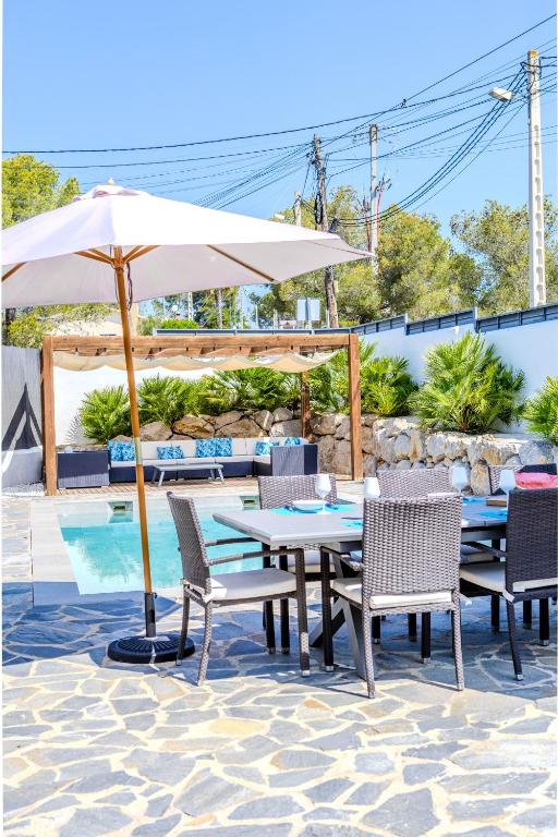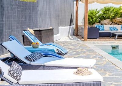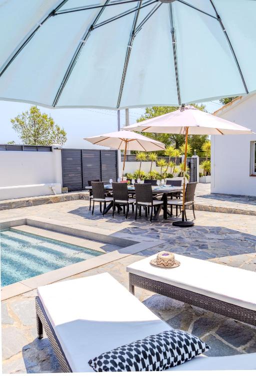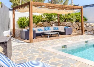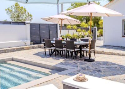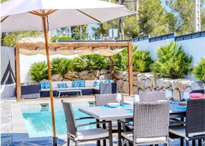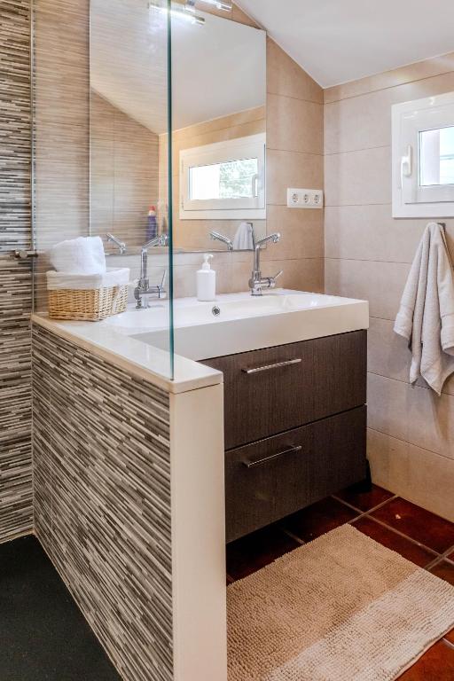 En el exterior, un verdadero oasis te espera. Podrás relajarte en la piscina privada de agua salada, descansar en las terrazas con vistas a la montaña o disfrutar de agradables veladas en el jardín con barbacoa. Además, el alojamiento ofrece aparcamiento privado gratuito, asegurando comodidad desde el primer momento de tu llegada.