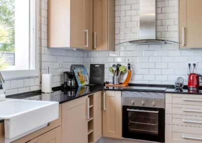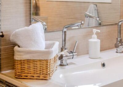 La vivienda cuenta con 3 dormitorios cuidadosamente distribuidos, entre ellos una suite principal de lujo en la planta superior y una suite independiente en la planta inferior, lo que garantiza privacidad y comodidad para todos los huéspedes. La casa es apta para 6 adultos (y 2 niños hasta 3 años, gratis, utilizando las camas de bebé que pone a disposición) Dispone de 2 baños completos con ducha y bañera, así como una amplia sala de estar con chimenea y un salón-comedor de diseño abierto que conecta con una cocina totalmente equipada con nevera, cafetera y todo lo necesario para disfrutar de estancias largas o escapadas cortas. La capacidad y la distribución de esta casa la convierten en el espacio perfecto para compartir con familia o amigos.